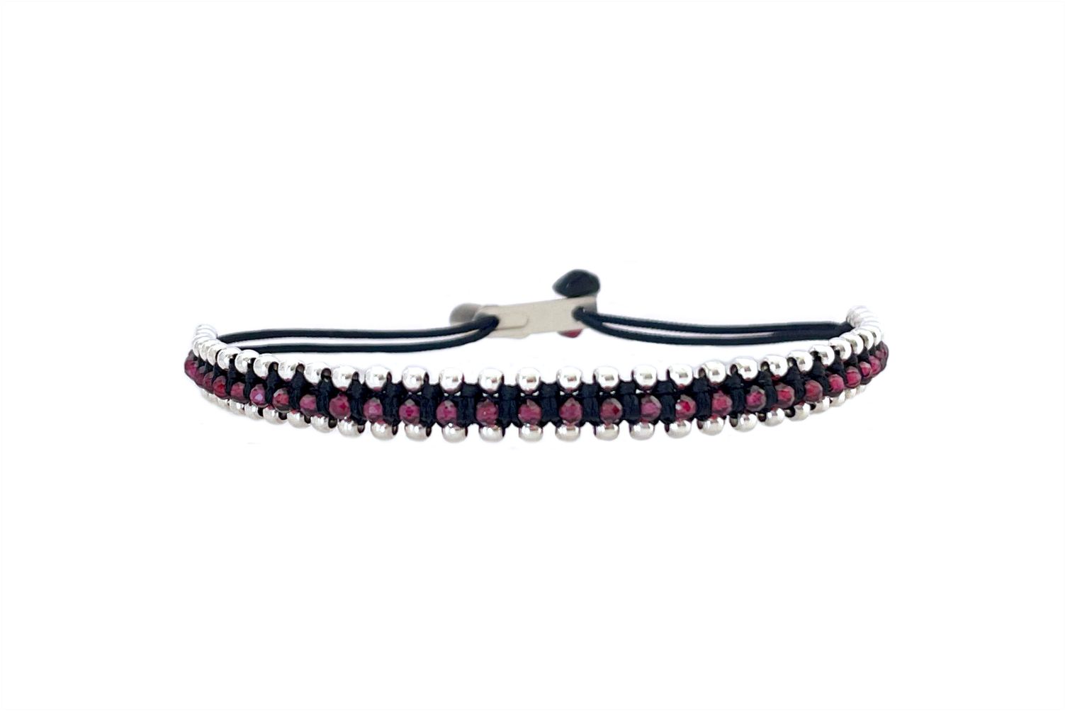 Fine tiny garnet & sterling silver balls woven bracelet.