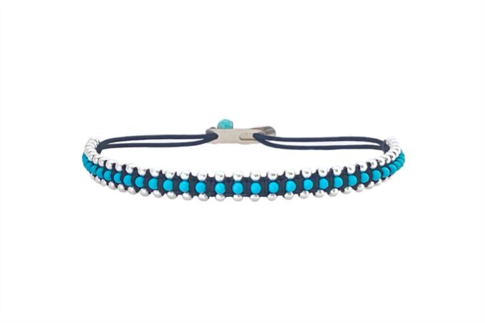 Fine tiny turquoise & sterling silver balls woven bracelet.