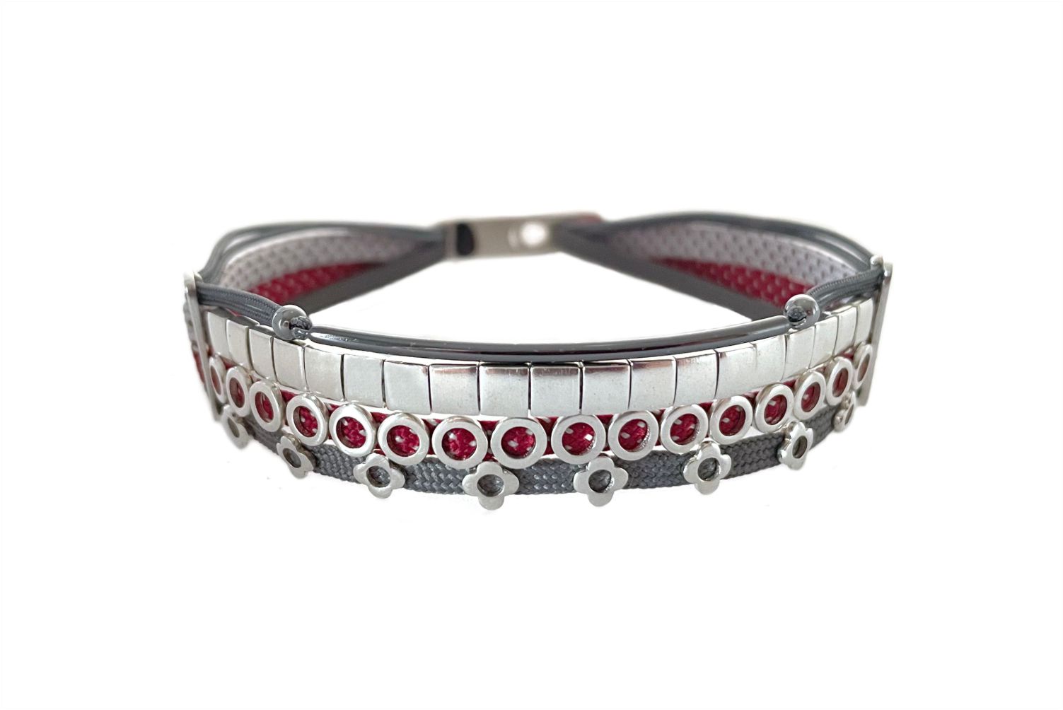 Multiline bracelet in 925 sterling silver with plaque, square tubes, mini rounds and crosses.